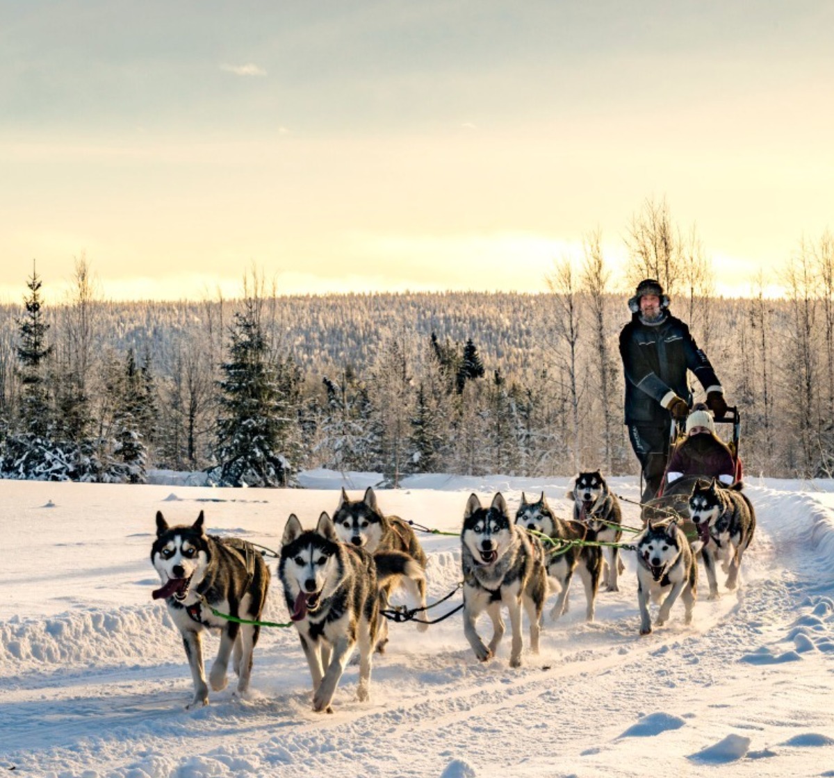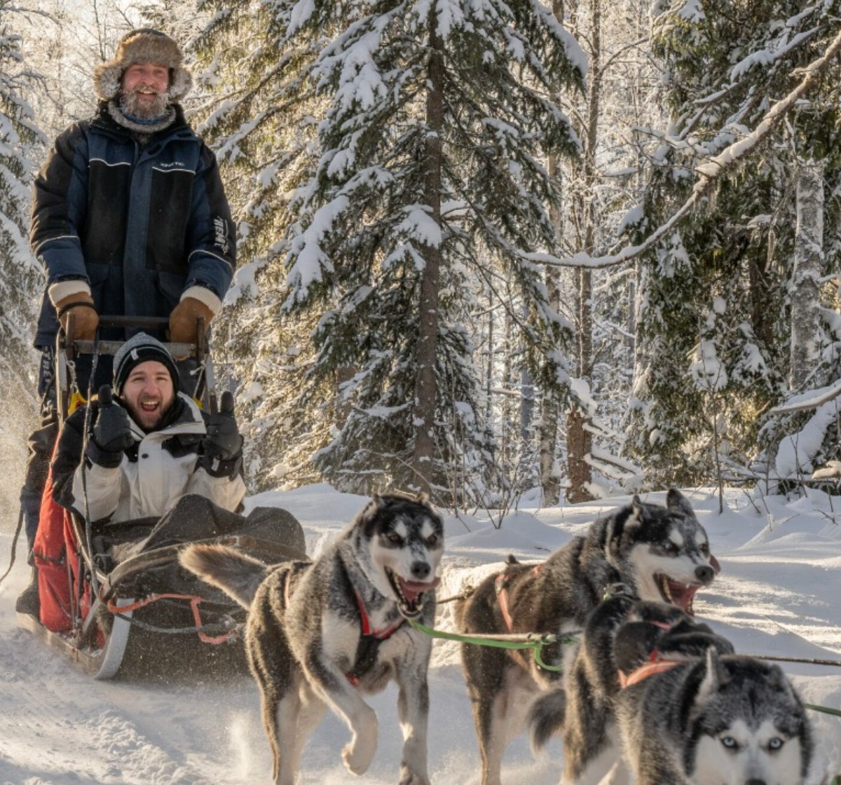 Siperianhuskyvaljakko kiidättää sinua tykkypuiden reunustamalla reitillä ja matka taittuu perinteisessä kahden hengen reessä joko itse koiria ohjastaen tai mukavasti kyydissä istuen. Retken aikana pidetään taukoja, jolloin vaihdetaan kuljettajaa ja samalla voit ottaa valokuvia Kainuun vanhimpien metsien tykkypuista sekä tietenkin upeista valjakkokoirista! Ajon jälkeen koiravaljakko-opas kertoo sinulle koirien elämästä ja koulutuksesta.