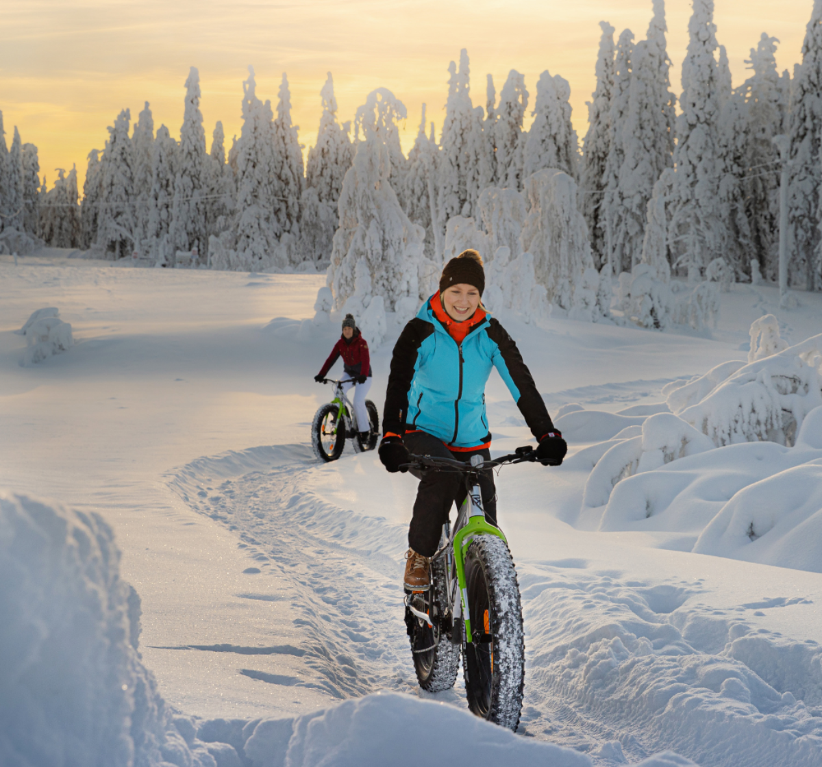 Ukkohallasta löytyy paljon huollettuja ja kunnostettuja reittejä pyöräilijöille. Laadukkailla sähköfatbike-pyörillä polkaiset pidemmänkin retken vaivatta. Vuokraa meiltä sähköfatbike ja lähde omatoimiselle talviseikkailulle Ukkohallan ympäristöön.